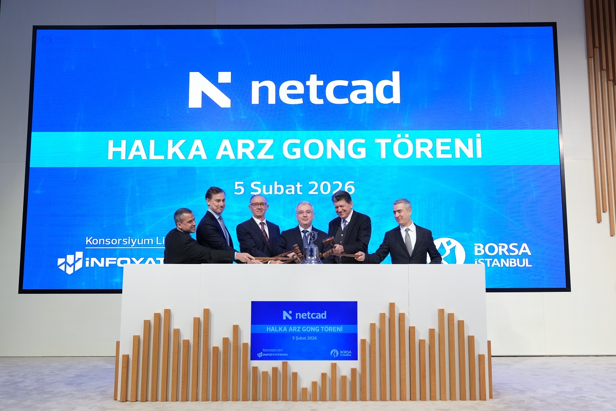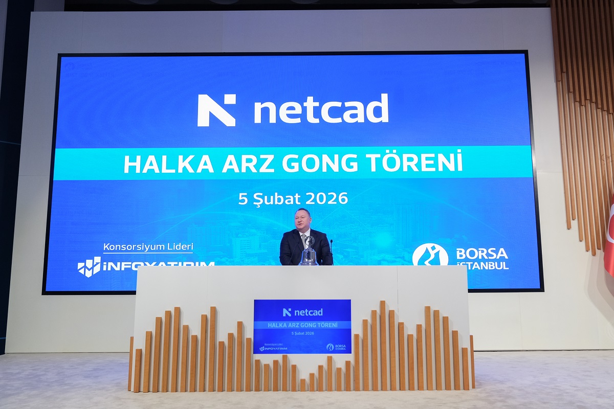 Geliştirdiği yazılım çözümleri ile yerel yönetimler ve kamu kuruluşları başta olmak üzere işletmelerin dijitalleşme sürecine katkıda bulunarak yarını şekillendiren Netcad Yazılım, ilk gong ile sermaye piyasalarına adım attı. İnfo Yatırım liderliğinde, 28-29-30 Ocak 2026 tarihlerinde talep toplama sürecini tamamlayan şirket, NETCD koduyla, Borsa İstanbul Ana Pazar’da işlem görmeye başladı. Gong töreni; Borsa İstanbul A.Ş. Genel Müdürü Korkmaz Ergun, Netcad Yazılım Yönetim Kurulu Başkanı Yalçın Nak, Netcad Yazılım Yönetim Kurulu Başkan Yardımcısı Sarper Ak, Netcad Yazılım Yönetim Kurulu Üyesi Serkan Kızıl, Netcad Yazılım Genel Müdürü Deniz Şanan, İnfo Yatırım Yönetim Kurulu Başkanı Namık Kemal Gökalp, İnfo Yatırım Genel Müdürü Tarkan Akgül ve çok sayıda davetlinin katılımıyla gerçekleşti.